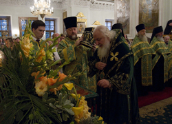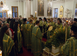 Отслужив вечерню и литию, за утреней по прочтении Евангелия и исполнения величания празднуемому святому во время чтения канонов благоверного князя Даниила Московского владыка Арсений совершил помазание елеем молящихся в храме.