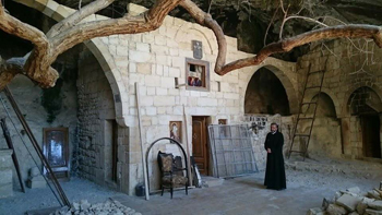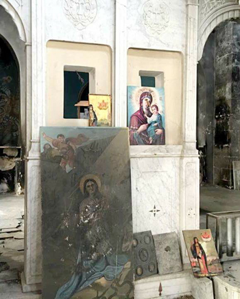 У подножия горы Каламун нас встречает глава городского совета Маалюли Наджи Вахби. Для начала ведет в самую большую местную церковь Святого Георгия, в которой недавно закончились основные реставрационные работы. Однако на стенах еще висят оскверненные и наполовину сожженные иконы, напоминающие о трагедии. Господин Наджи рассказывает, что в результате военных столкновений все жилые дома в Маалюле оказались разграблены, в большинстве из них были устроены пожары. Со всех христианских храмов были сняты кресты и колокола, разграблена и уничтожена церковная утварь, украдена находившаяся в монастыре Святой Феклы статуя, изображавшая Иисуса (работа российского скульптора Рукавишникова). Боевики не пропустили ни одного христианского символа, который попадался им на глаза; в этой ненависти к чужой вере было что-то патологическое, бесовское. «Но самое страшное впереди, – сообщает глава города, – мы с вами сейчас поднимемся в горы и посетим монастырь Святой равноапостольной Феклы. Сейчас там идут реставрационные работы, но то, что вы увидите... одним словом, я прошу вас быть мужественными, ибо все мы знаем, что святыня поругаема не бывает».