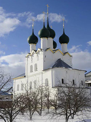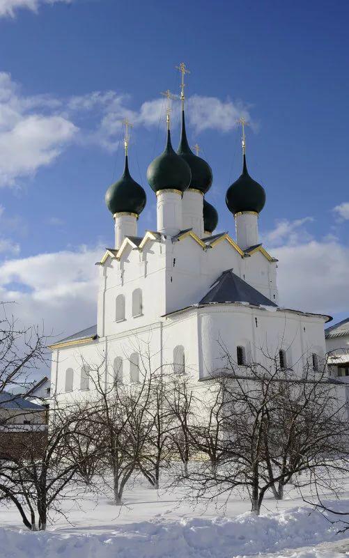 Уважаемые читатели! Если вы соберетесь в путешествие по городам Золотого кольца России и окажетесь в Ростове Великом, то обязательно отправляйтесь в центр этого древнего города прямо к величественно раскинувшемуся Кремлю и обратите внимание на белокаменную, увенчанную зелеными луковками куполов церковь, которая словно прижалась к крепостной стене…