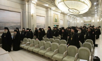 Собрание предварила Божественная литургия в храме Сретения Владимирской иконы Пресвятой Богородицы, которую возглавил архиепископ Каширский Феогност, председатель Синодального отдела по монастырям и монашеству.