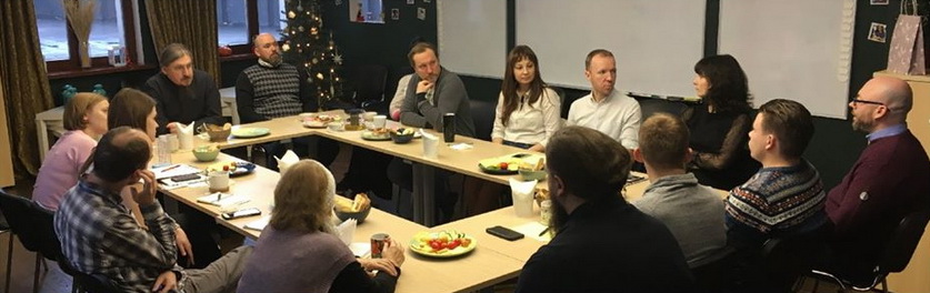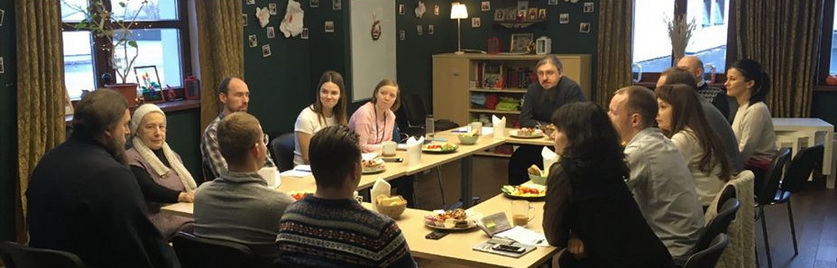 Руководители подросткового клуба «Пилигримия» Тарас и Юлия Лагутинские рассказали о прошедшей традиционной зимней программе «Рождественская история», тренинге по целеполаганию, проекте «Я в храме», колядовании на Святках в подшефных Центру учреждениях и о новом формате клуба – семейном рождественском празднике. В планах на ближайший месяц посещение хосписа и проведение городского мини-лагеря «Стратегия-45», посвященного умению достигать целей и умению работать в команде.