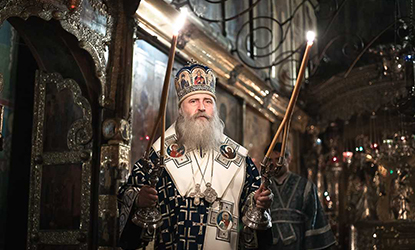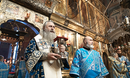 Среднюю Божественную литургию в Троицком соборе монастыря возглавил председатель Синодального отдела по монастырям и монашеству архиепископ Каширский Феогност.