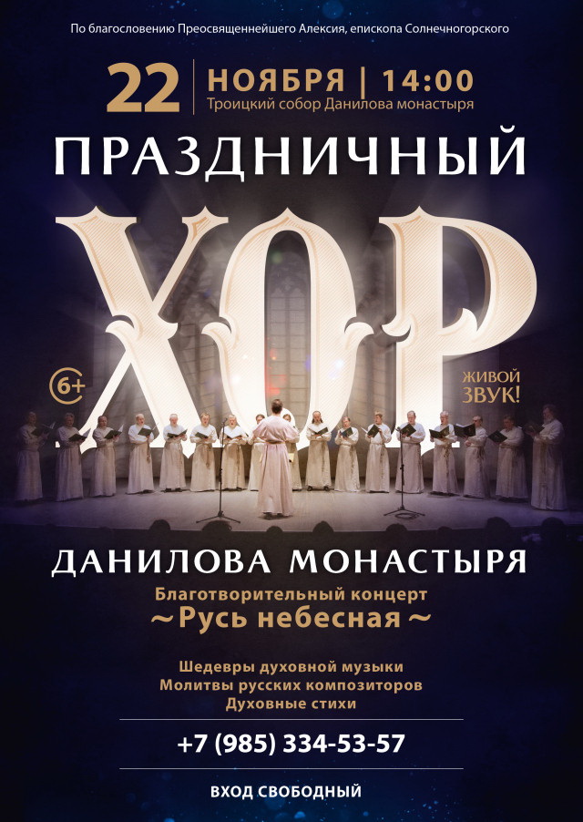 «Русь небесная» — концертная программа, в которой прозвучат шедевры русской духовной музыки, песнопения-молитвы русских композиторов, русские духовные стихи.