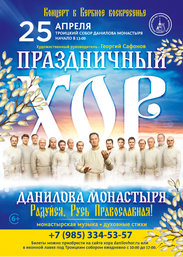 25 апреля в Троицком соборе Даниловой обители состоится концерт хора монастыря с программой «Радуйся, Русь православная!». Прозвучат песнопения двунадесятых праздников и духовные стихи.