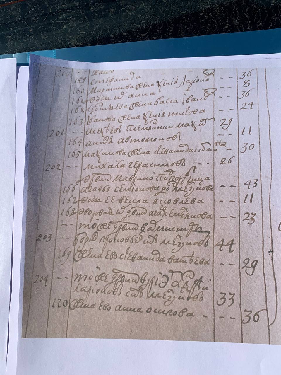 Купчие, в числе прочих документов с XI до начала XX веков, хранятся в Российском государственном архиве древних актов (РГАДА). Елена Александровна обратилась туда и впервые (!) запросила все купчии Агафии Семеновны Мельгуновой. Там значилось, что продажи имений происходили в селе Екимовское Рязанского уезда. Сейчас оно называется село Екимовка Рязанскаго района Рязанской области. В государственном архиве Рязанской области (ГБУ ГАРО) архивариус запросила исповедные росписи [5] нескольких сел за определенный период времени.