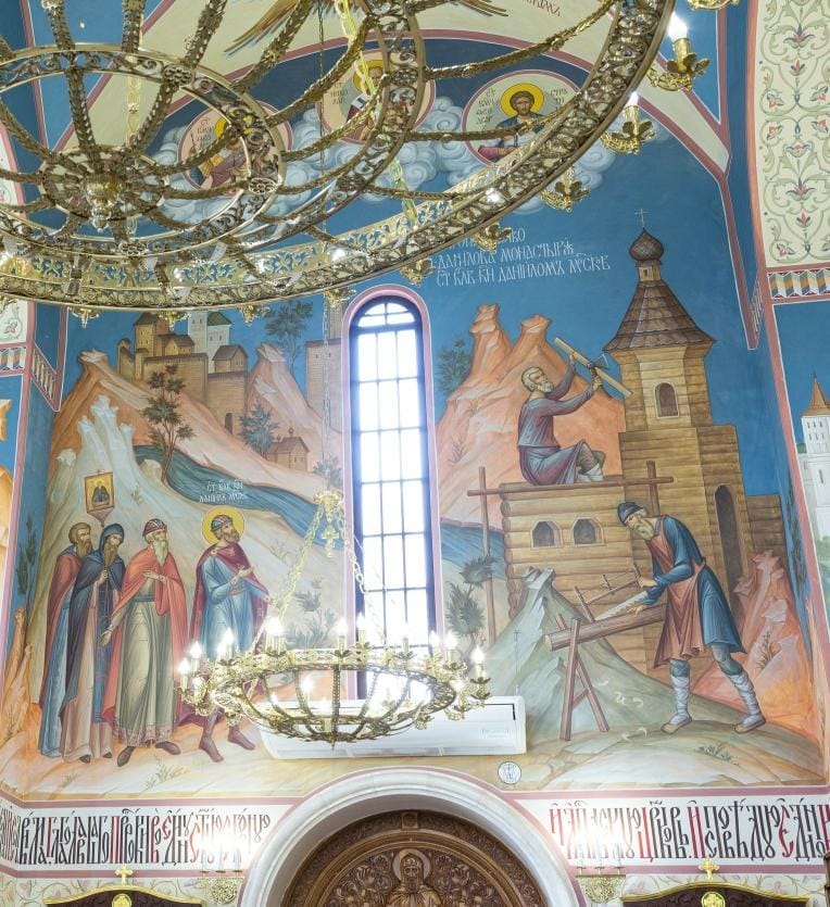 В 1983 году монастырь возвращают Церкви, начинается восстановление обители. В начале 90-х принимается решение полностью расписать второй ярус храма Отцов Семи Вселенских Соборов. Работу в северном приделе, посвященном князю Даниилу, поручают группе художников под руководством Александра Александровича Лавданского. Так появляется второй в истории церковного искусства житийный цикл князя Даниила. И он же первый в храмовом пространстве.