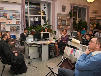 После молитвы представляются наши волонтеры, которые трудятся на контактном телефоне, затем – все участники группы. Представляясь, человек называет свое имя и формулирует запрос. В большинстве случаев даже это для него является проблемой. Например, муж-алкоголик приходит вместе с женой, и она говорит: «Мы пьем», – хотя сама и не является алкоголичкой. Мы рассаживаем их подальше друг от друга, они при этом очень расстраиваются. Далее я читаю евангельский отрывок на русском языке, который будет звучать в храме на следующий день, в воскресенье, и предлагаю минуту помолчать и подумать. После паузы читаю Евангелие еще раз, так как слушатели сами просят читать Евангелие дважды.