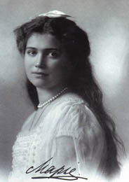 Третья дочь императора появилась на свет 14 (26) июня 1899 года в Петергофе и была названа в честь бабушки – императрицы Марии Федоровны. В детстве отличалась веселым и легким характером. Светло-русые волосы и громадные темно-синие глаза, которые родные называли «Машкины блюдца». Для своего возраста была девочкой весьма крупной, и в семье ее в шутку называли «наш добрый толстенький Туту». Да и сама Мария считала себя неуклюжим толстым медвежонком и тушевалась в присутствии своих старших изящных сестер. Порой даже родители чуть посмеивались над ее полнотой.