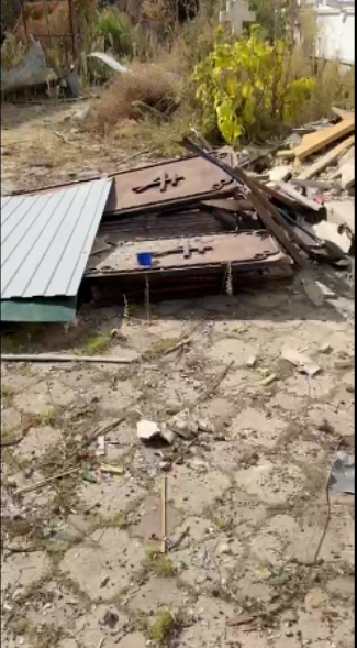 И свой Троицкий храм, который выдержал три прямых попадания «града», священник все это время не забывал, ремонтируя его в меру сил. Вместе с помощниками ему удалось накрыть разбитую крышу баннерами, забить нижние окна листами железа, вставить двери, наварить решетки на пробитые взрывами ниши в заборе, восстановить нижний ряд иконостаса, облачить жертвенник и престол. Но влага все равно проникает в храм через верхние окна. От сторожки, трапезной, гаражей, гостевого домика ничего не осталось. Что до колокольни, то внешне она цела, но внутри обрушились все перекрытия и лестницы.
