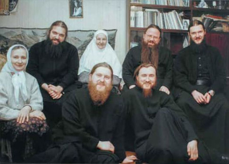 В верхнем ряду слева направо: Людмила Теплякова, схиигумен Димитрий (Меметов), схимонахиня Анна (Теплякова), архимандрит Алексий (Поликарпов), иеродиакон Иннокентий (Ольховой). В нижнем ряду: иеромонах Зосима (Давыдов), будущий епископ Якутский и Ленский,